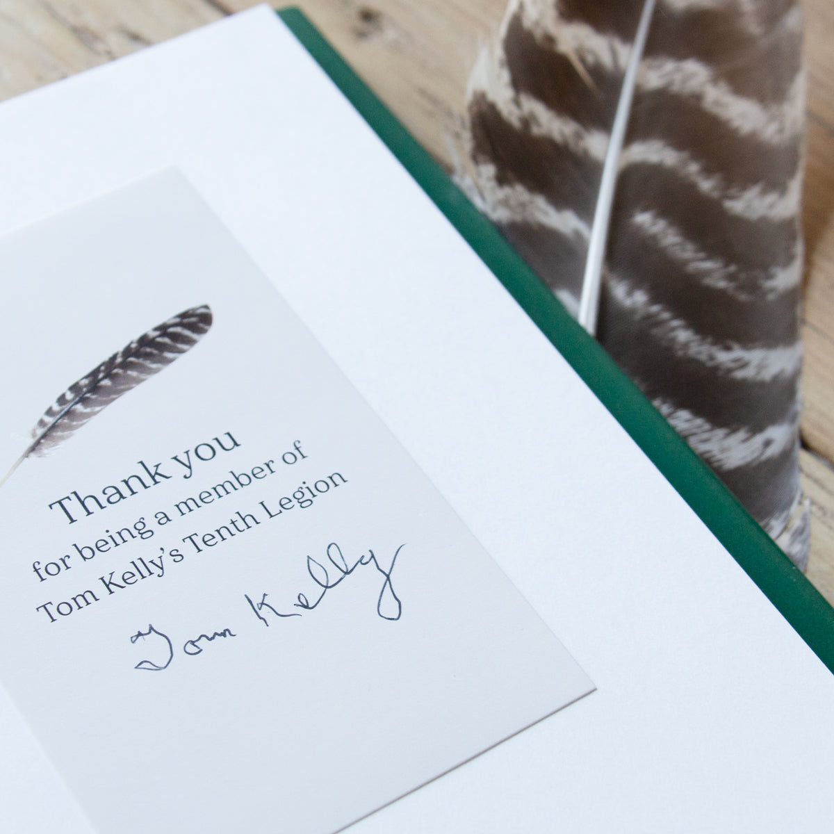 This is a signed Tenth Legion book 52 years in print—Tom Kelly self-published Tenth Legion in 1973. He created this masterpiece of Wild Turkey literature by recording into a portable dictation machine while working in the woods. His wife Helen transcribed his words into a book that has become the “Bible of Wild Turkey hunting.” The book has not changed in the past 51 years, even if the dust covers have had many different looks. Copyright Tom Kelly 1973Copyright Tom Kelly Inc 2012